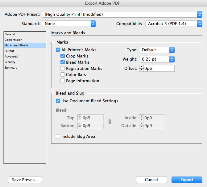 - Put ".125in." for each of your bleeds. You do not need to change the slug.
